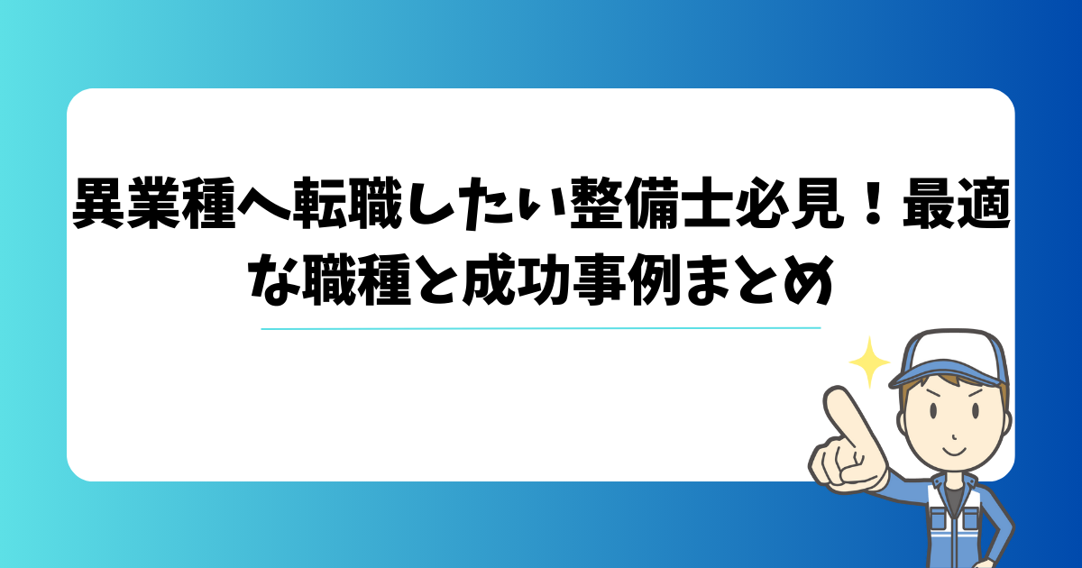 自動車整備士としてのキャリアに限界を感じたり、他の職種に挑戦したいと考えているあなたへ。本記事では、あなたの悩みを解決するために、異業種転職の選択肢や成功事例を詳しく解説します。