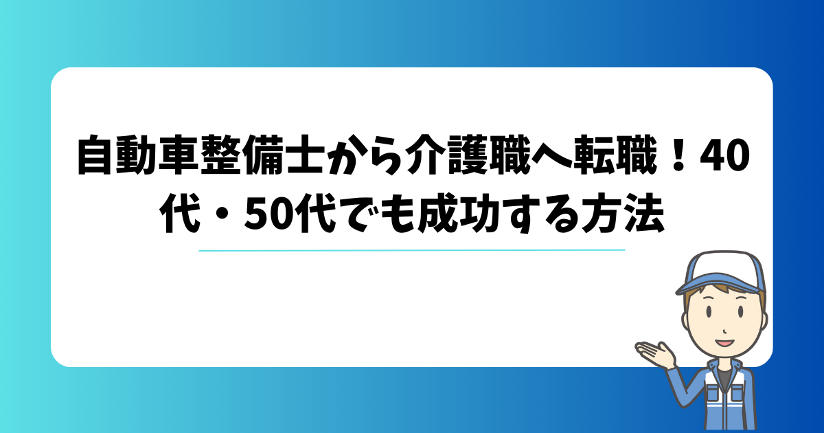 この記事では、自動車整備士から介護職への転職の流れや、安心してキャリアを築くためのポイントを詳しく解説。40代・50代特有の体力面・収入面の不安を解消し、あなたの経験やコミュニケーション力を活かすヒントをお伝えします。