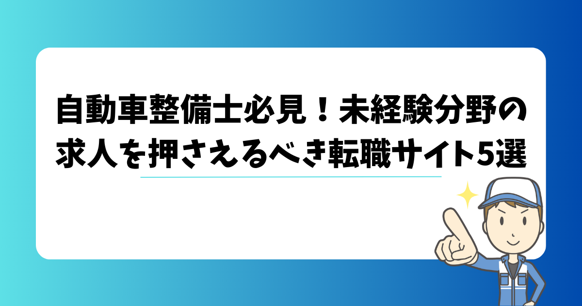 いざ未経験業種に踏み出そうと思っても、「どの転職サイトを使えばいいの?」と迷う方は多いでしょう。ここでは、幅広い業種の中から最適な求人を見つけやすい5つのサイトをご紹介します。整備士からのキャリアチェンジで成功した事例や、サイトごとの特徴を押さえて、あなたにぴったりのサイトを見つけてください。