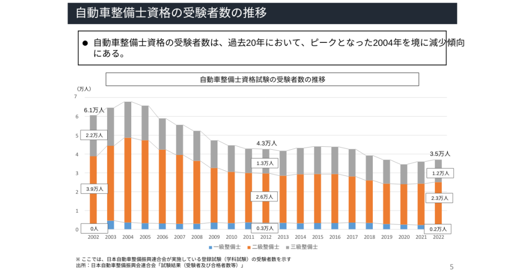 - 若手整備士の減少と高齢化:新規参入者が少ない一方でベテラン層が年々高齢化