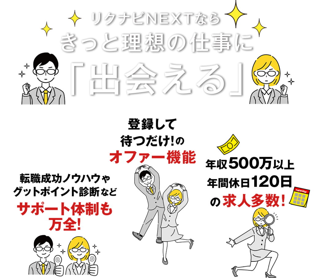 リクナビNEXTは、多くの求人情報を一括検索できる“転職サイト”です。大手からベンチャー企業まで幅広い募集がそろい、未経験OKの求人も豊富に取り扱っています。